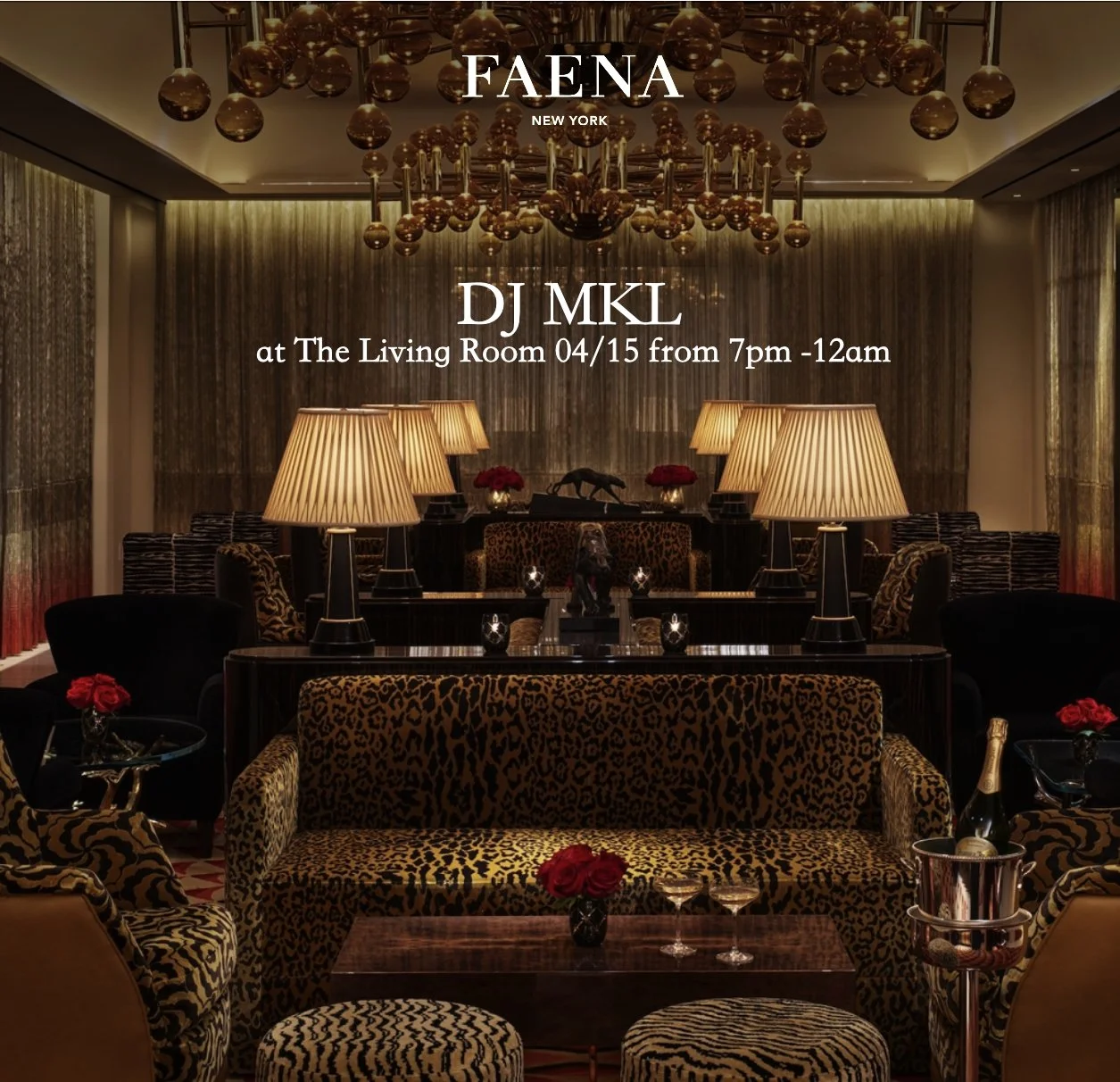 04/15/26 Faena New York Apr 15 Written By Michael K Lopez 500A W 18th StNew York, NY 10011https://www.faena.com/new-york Michael K Lopez DJ MKL lion1music.com